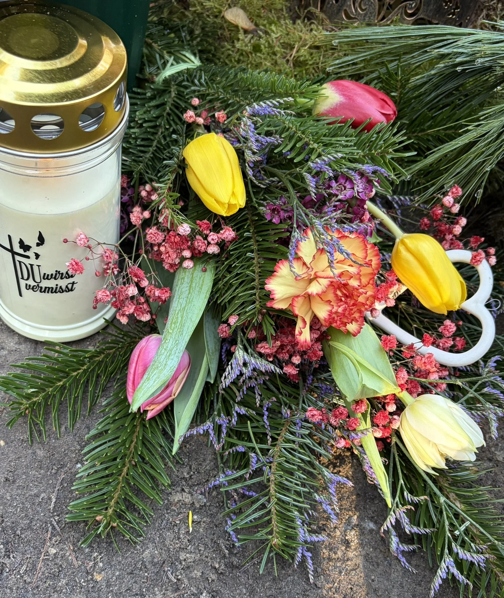 Mein lieber Schatz. Du fehlst mir sooo sehr. Es ist, als wenn ein Teil von mir gegangen ist. Du und Jan, ihr seid mein Lebenselixier, ihr habt meinem Leben einen Sinn gegeben und ich danke dir sooo sehr für jeden einzelnen Moment, den ich mit dir erleben durfte. Du hast so viel Freude in dieses Haus gebracht. Und jetzt ist es so still hier. Alle denken, dass Weihnachten schlimmer für uns zu ertragen ist. Aber das ist nicht so. Ich vermisse dich jeden Tag gleich und ich wünsche mir jeden Tag aufs Neue, dass ich die Uhr zurückdrehen kann und dass das alles nur ein Traum ist und du wieder vor mir stehst. Ich kann es nicht in Worte fassen, wie sehr du mir fehlst, wie sehr mein Herz mir weh tut. Der Gedanke daran, dass du nicht alleine bist, ist das Einzige, was mir ein bisschen Trost gibt. Ihr drei passt jetzt auf euch auf, wo auch immer ihr seid. Und wir passen hier alle aufeinander auf. Wir haben gestern Sidney und Fynnjard Blumen und eine Kerze gebracht. Und in deinen Blumenstrauß habe ich die Blumen von beiden zusammenbinden lassen… das symbolisiert eure Verbindung und dass ihr nicht alleine seid. Von Sidney habe ich dir die Tannenzapfen mitgebraucht. Frohe Weihnachten, Schatz.